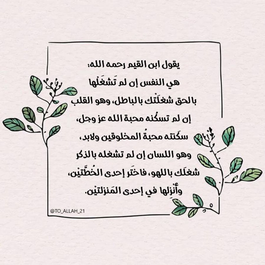 (النفس إن لم تشغلها بالحق، شغلتك بالباطل)🌿.