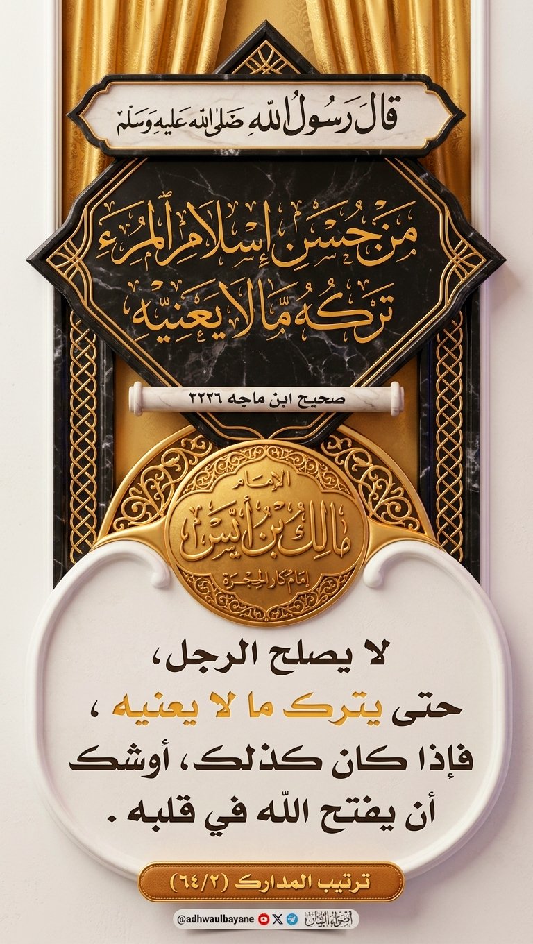 من حُسنِ إسلامِ المرءِ تركُه ما لا يَعنيهِ الإمام مالك بن أنس رحمه اللهمن حُسنِ إسلامِ المرءِ تركُه ما لا يَعنيهِ الإمام مالك بن أنس رحمه الله