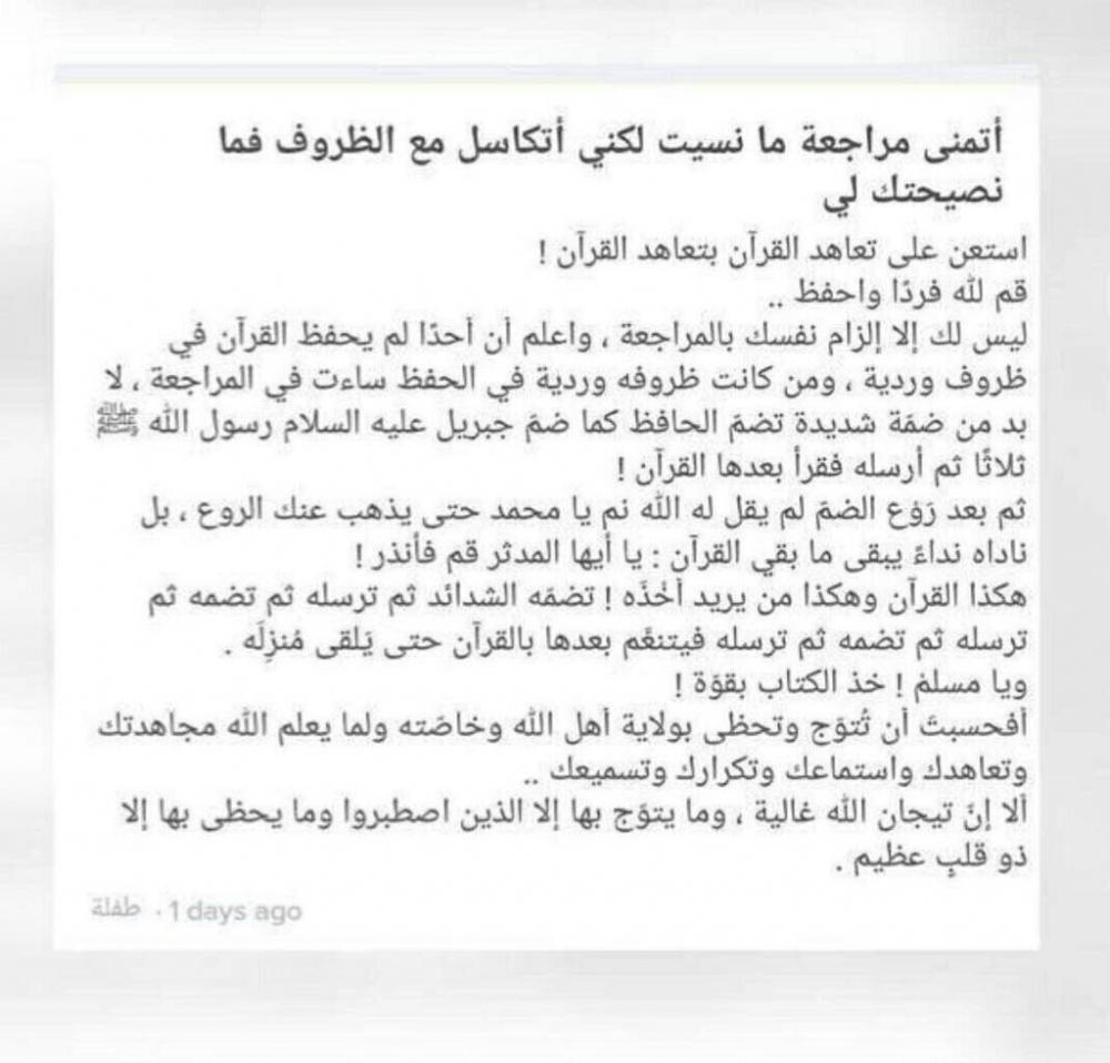 السلام عليكم ورحمة الله و بركاته الحمد لله نمت مراجعة الأوجه الخمسة من السورة أتمنى أن تكوني بخير أختي أخت المحبة و عسى سبب غيابك خير حفظك الله وجزاك كل خير على كل حرف وكل كلمة تفيديننا بها دمت بخير يا غالية.السلام عليكم ورحمة الله و بركاته الحمد لله نمت مراجعة الأوجه الخمسة من السورة أتمنى أن تكوني...