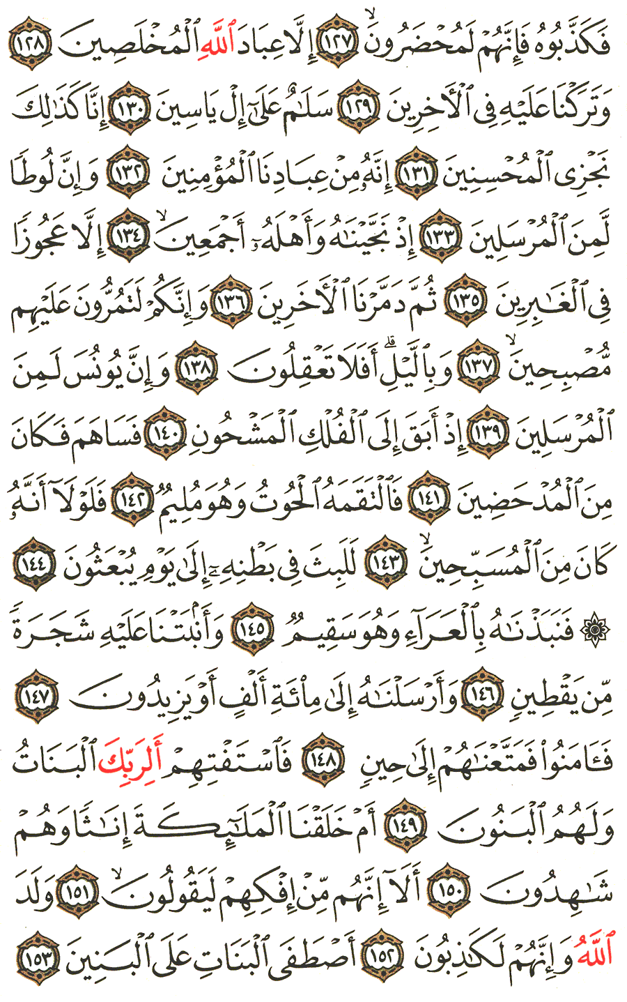 138 - وتمرون عليها كذلك ليلًا، أفلا تعقلون، وتتعظون بما آل إليه أمرهم بعد تكذيبهم وكفرهم وارتكابهم الفاحشة التي لم يسبقوا إليها؟!139 - وإن عبدنا يونس لمن رسل الله الذين أرسلهم إلى أقوامهم مبشرين ومنذرين.