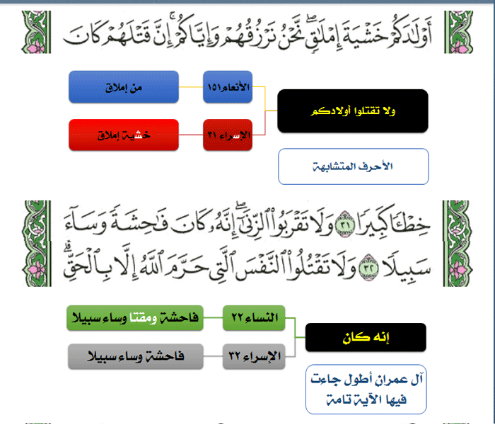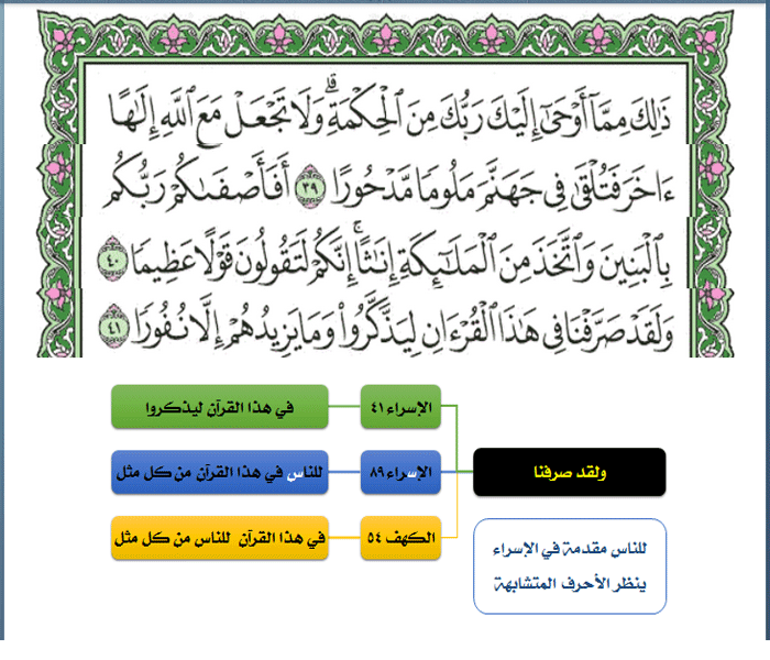 متشابهات سورة الاسراء ( 6 أوجه الاولى )