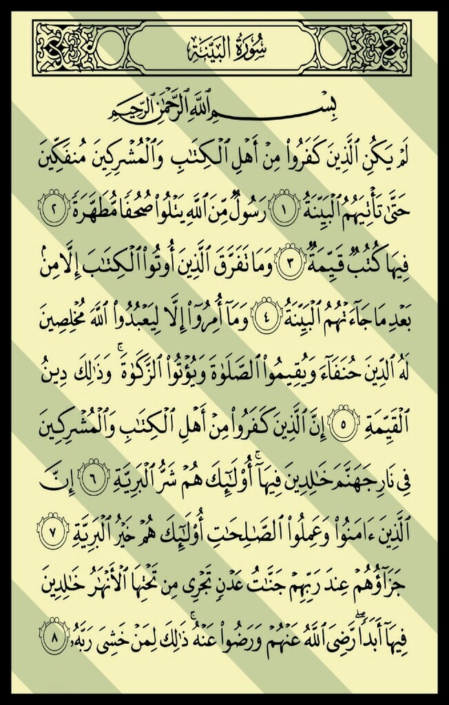 الحفظ المطلوب: سورة البينة من الآية (٦) إلى الآية (٨)