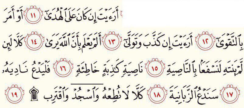 الحفظ المطلوب: سورة العلق من الآية (١١) إلى الآية (١٩)