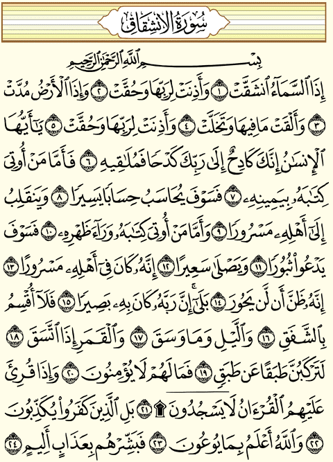 الحفظ المطلوب: سورة الأنشقاق من الآية (٢١) إلى الآية (٢٥)