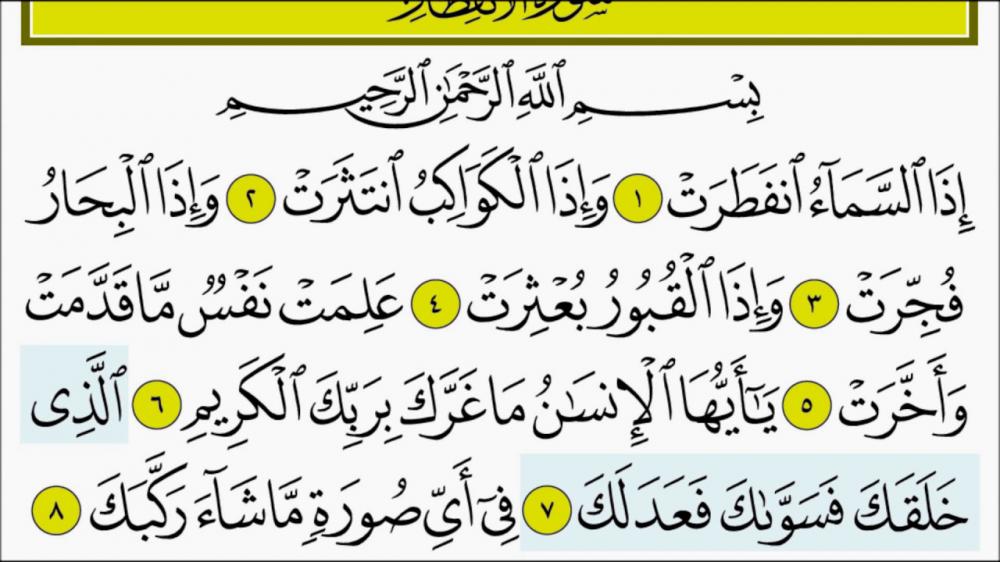 الحفظ المطلوب: سورة الانفطار من الآية (٧) إلى الآية (١١)