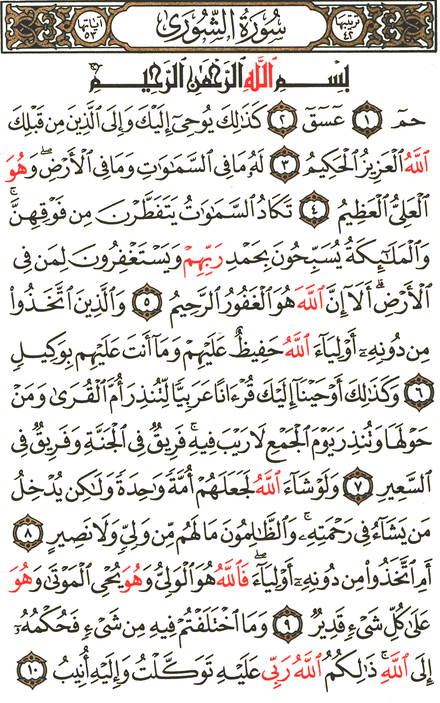 بسم الله راجعت عشر آيات من سورة الشورى ولله الحمدبسم الله راجعت عشر آيات من سورة الشورى ولله الحمد