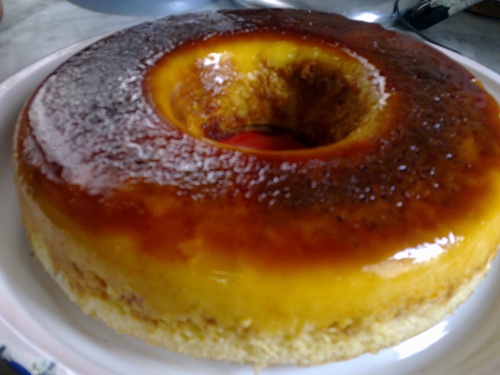 و بس صبيها على السكون المطحون و دخليها الفرن و زينها بكريم كرامل (سكر ذايب +نص كاس حليب على النار)