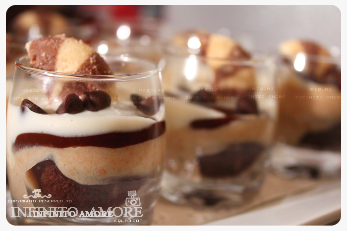 البسكوت الاصابع ونسقيه بالقهوه وبعدين الخليط الاصفر