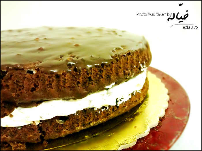 نضع الخليط فوق الكيك.. وندخله الفريزر لمدة ساعه او اكثر ..