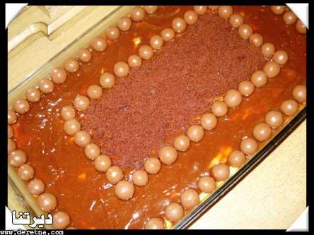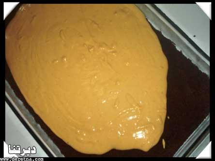 ونصب عليهم الكراميل وهو حار ونخلط ونصبه على الطبقه الاولى
