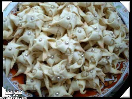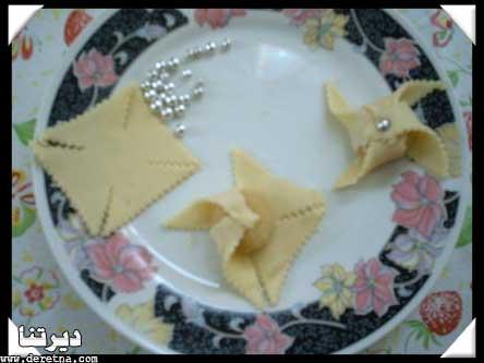 نقطع الحلوى بالقالب ونضع وسطها كويرة من اللوز