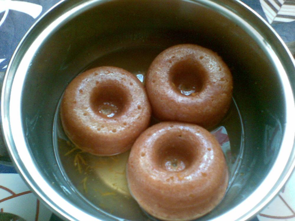 تدهن قوالب بابا فردية صغيرة بالزيت ويرش عليها الدقيق ثم يسكب الخفيق في هذه القوالب بحيث يملأ ثلاثة أرباعها.