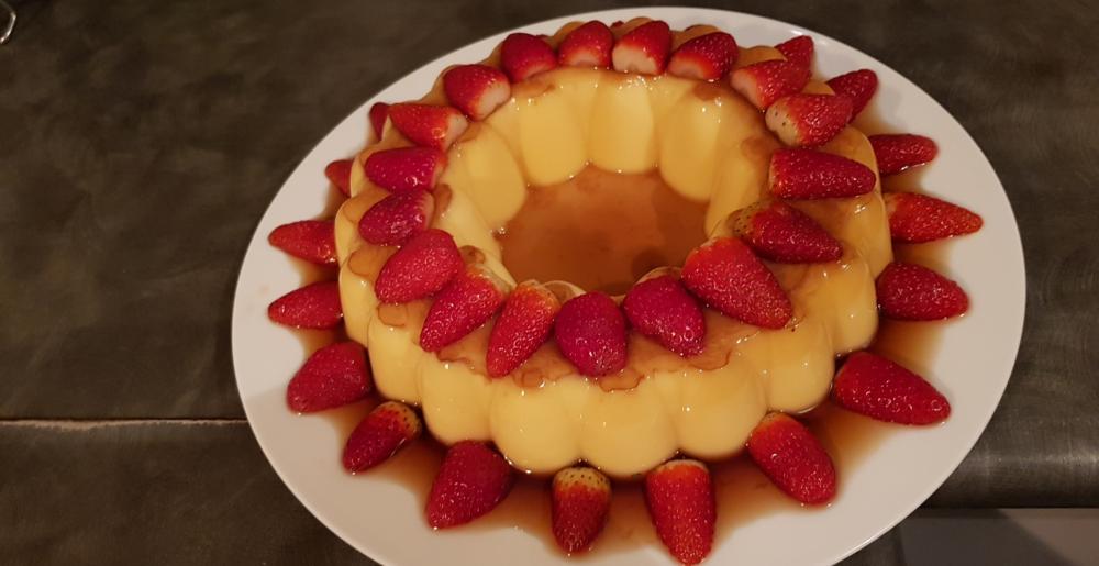 نضع القالب في الثلاجه مدة 4 ساعات قبل التقديم وبس تطلعيا من البراد قلبيا بصحن التقديم و