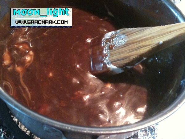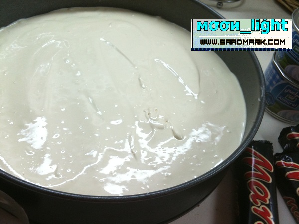 لين يذوب وحطيت فوقه 2 قشطه وصبيته على الصينيه بعد مابردت