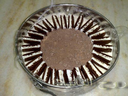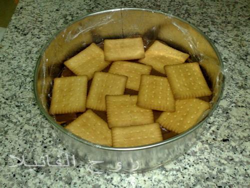 بسكويت شاي يصف با الترتيب في صينية تشيز كيك مغلفه