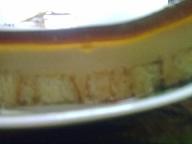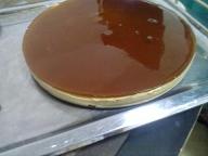 2 ظرف كريم كرامل وعلبة بيبسي انا ماكان عندي علبه فوضعت مقدار كأس ونصف من البيبسي في قدر على النار حتى يفور ثم نتركه يفتر قليلا ونسكبه على الصينيه بهذا الشكل