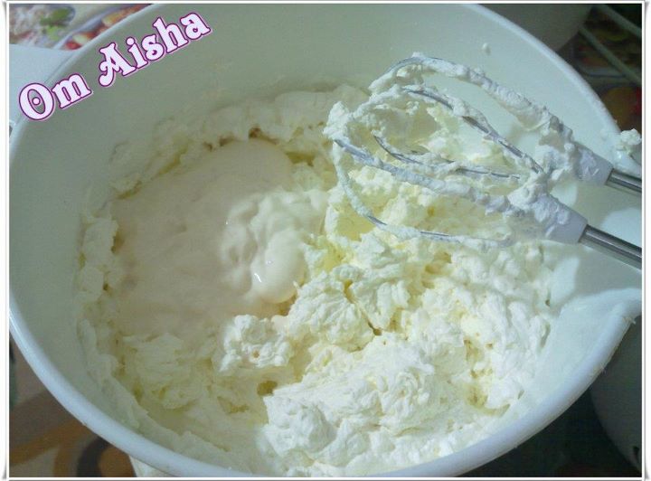 ونسكب عليه خليط الكريمة