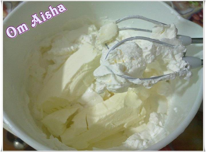 بعد خلط الكريمة والسكر والجبنة