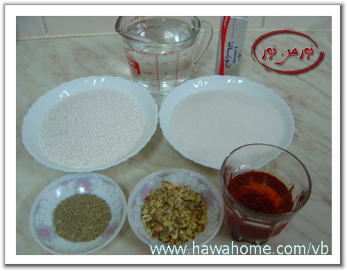 احمر وادا تبي يصير اصفر ملعقه ونص زعفران مدوبه في نص كوب ماء ورد