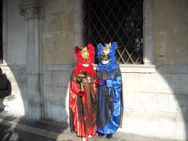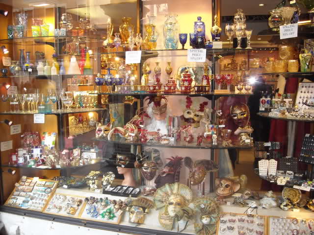 الواجهة فيها ماسكات وفيها أشياء مصنوعة من زجاج مورانو المشهور نسبة إلى جزيرة مورانو (البندقية عبارة عن جزر) وفينيزيا مشهورة بالتطريز أيضا.