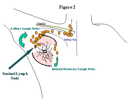 اول ما يحقنوها فيه غده ليمفاويه بالثدى اسمها sentinel node ومعناها الخليه الاولى اللى يصب فيها مجرى الليمف ومنها يروح لباقى الخلايا الليمفاويه اللى بالابط