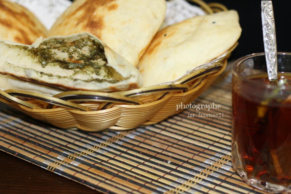 تعجنيها وتسوينها كور وخليها تخمر كل كوره افرديها بيدك و حطي الحشوه في الوسط و سكريها زي كيس النقود وافرديها اخبزيها في فرن حاااااار من فوق وتحت