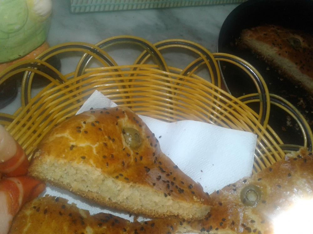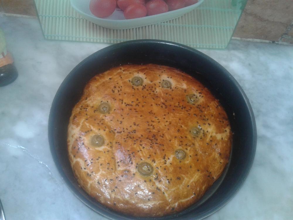 اول مرة اشترك في هذا القسم حبيت اعطيكم وصفةسهلة للخبز كوبين ونصف طحين كوب حليب دافءربع فنجان سكر نصف كوب زيت ملعقة كبيرة خميرة ملعقة كبيرة بكينغ باودر ملعقة صغيرة ملح ملعقة صغيرة الحبةالحلوة و بيضة و نصف كوب حليب باودر تخلطين المواد السائلة أولا و بعدها المواد الاخرى و بعدها تعجن العجينة جيدا و تترك لتتخمر مدة ساعة و بعدها تدهنفي الصينيةبالزيت ثم تعجن و تدهن بصفار البيض بعد أن زيناها بزيتون أخضر ترش ابالحبة السسوداء ندخلهاالفرن على درجة 180 و نشعله من الأسفل فقط مدى 20دقيقة و بعدها من الفوق 10 دقائق ....وصفتي جد بسيطة اردت ان اشارك بها