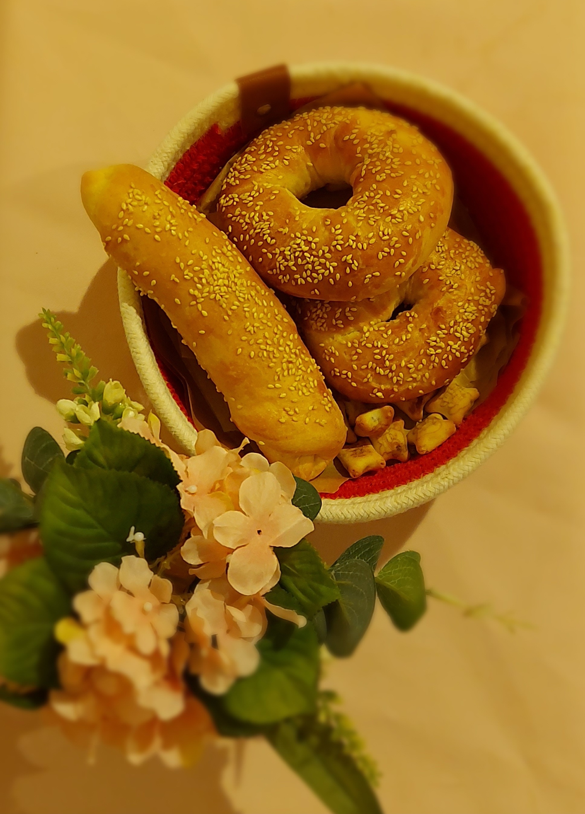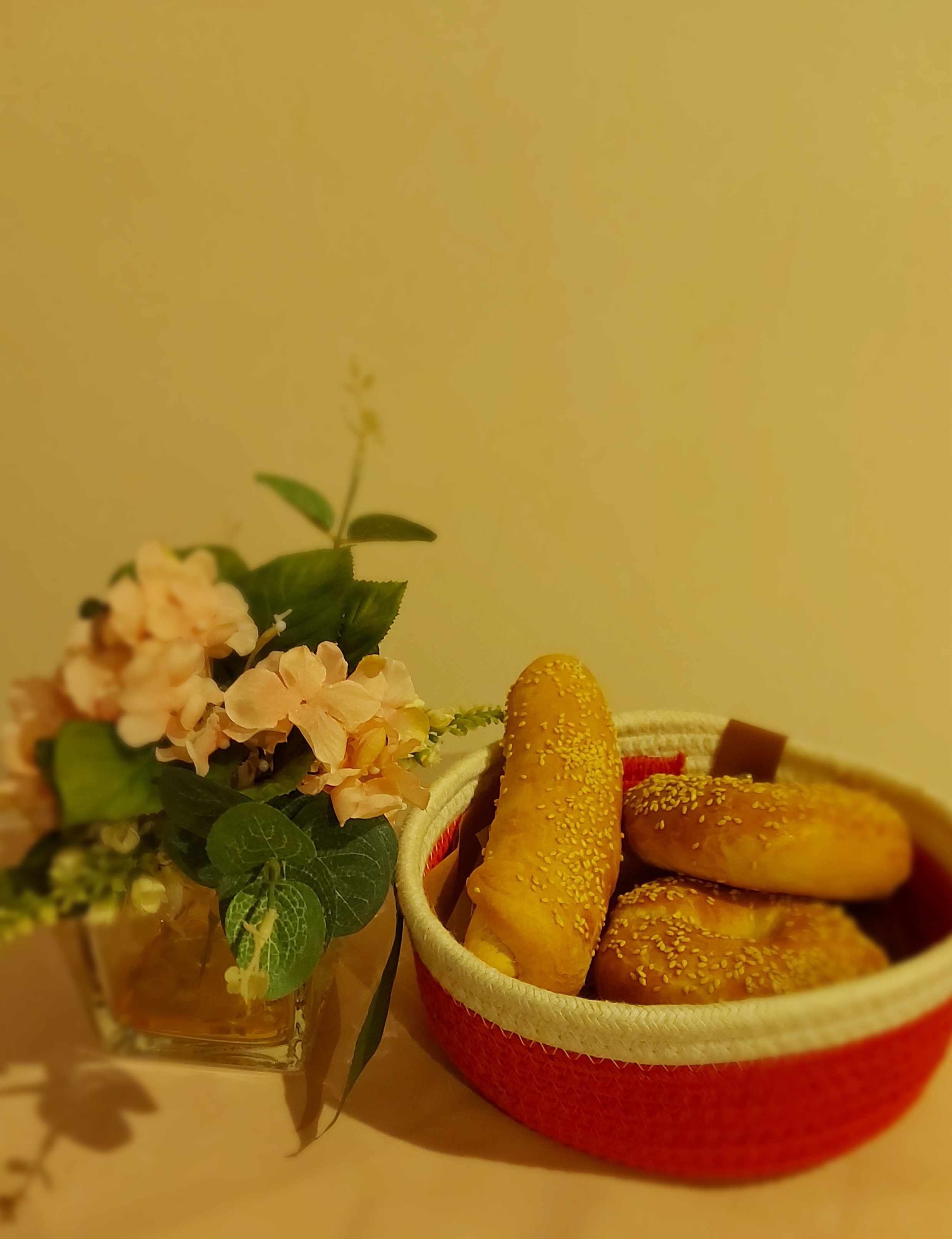 أعلى الخبز وكل الجوانب ونرش عليها السمسم
