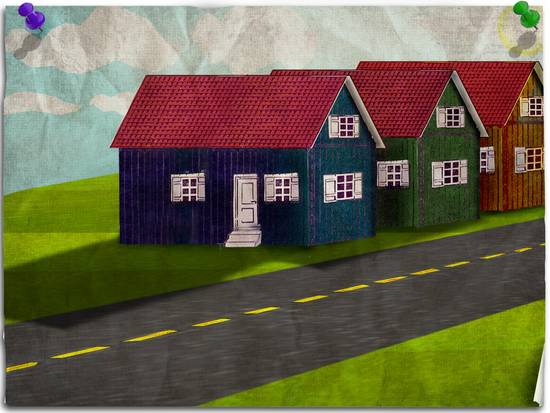 تقدرين بس تجيبين فلين قاعدة ومشابك الغسيل وتصفينهم على الفلين (على الأطراف بس) وبدون سقف ومن الداخل تقسمين البيت لغرف وتضيفين عليها الأغراض اللي عادة تكون فيها