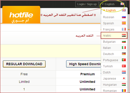 واللي تبغى تحمل من البدايه منالصفحه الانجليزيه تضغط regular down load وتكمل بنفس خطوات العربي