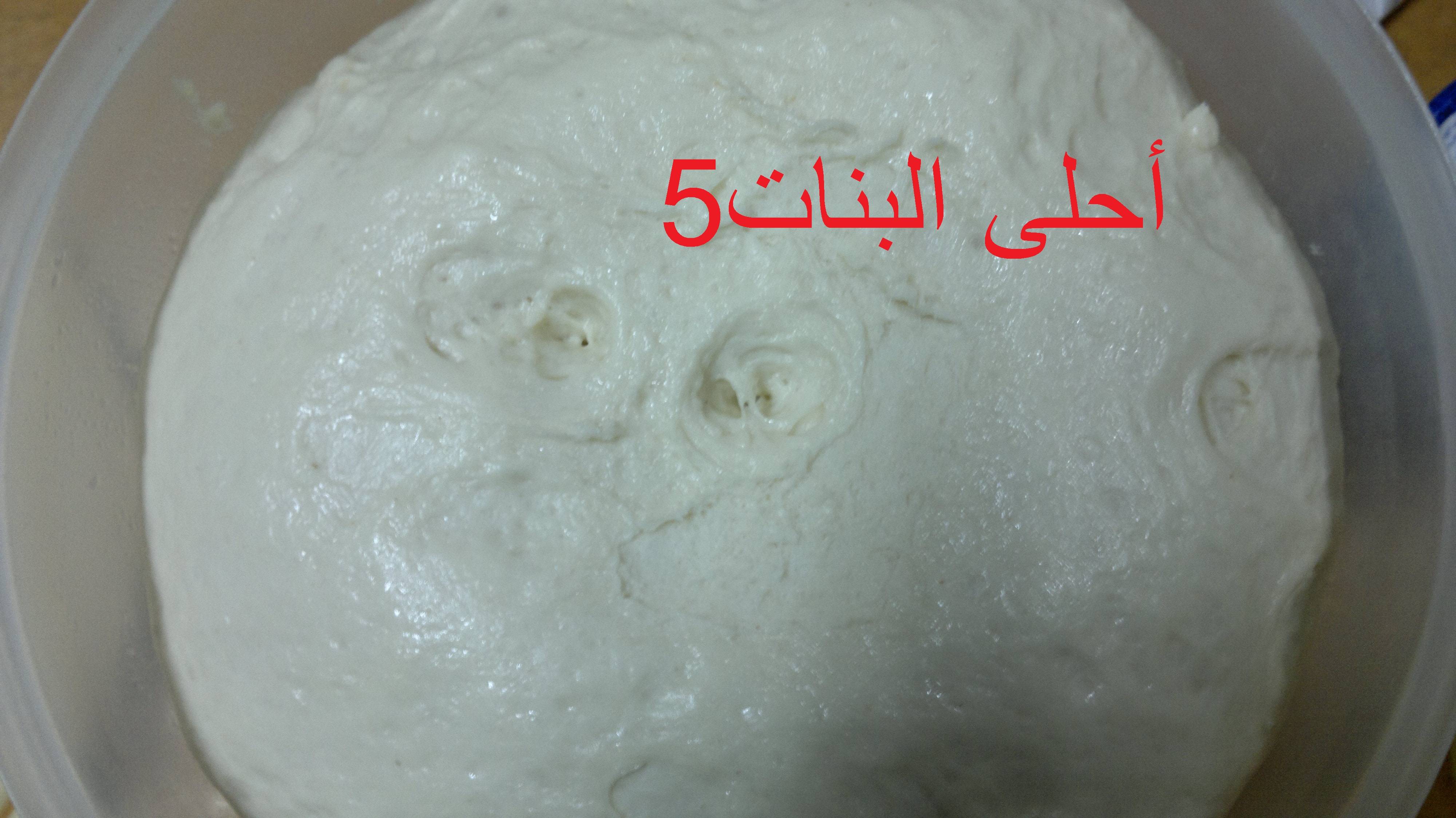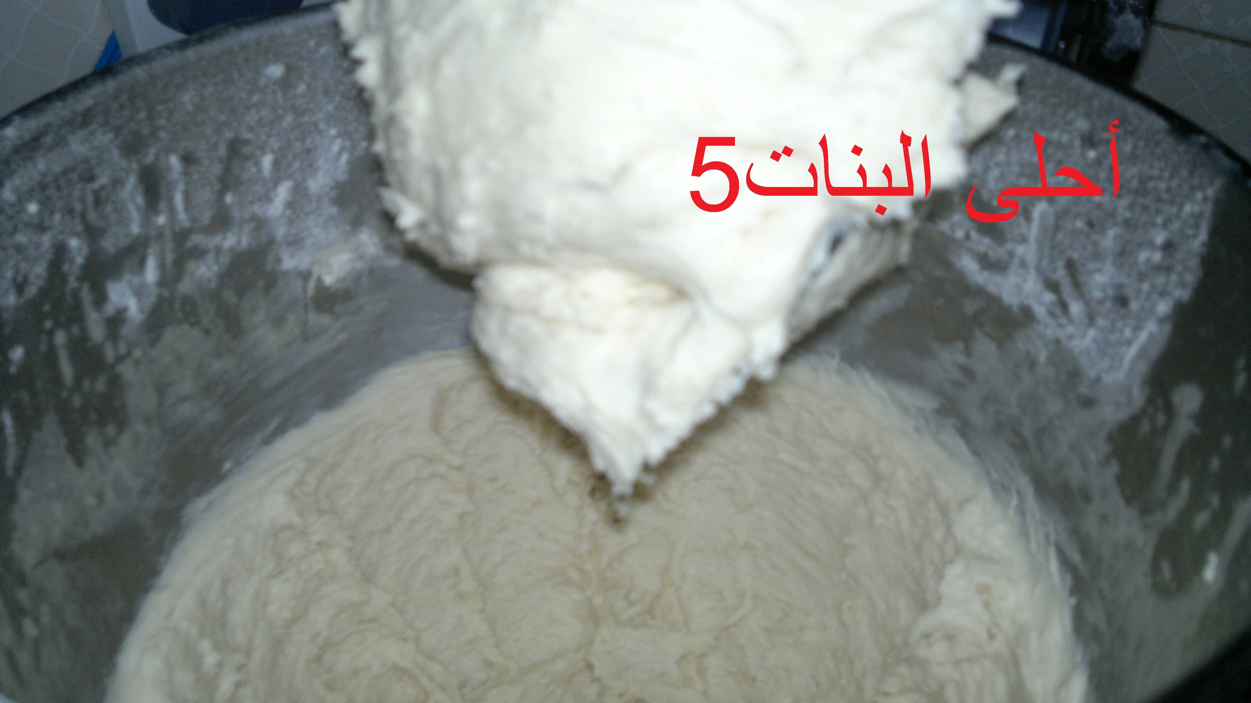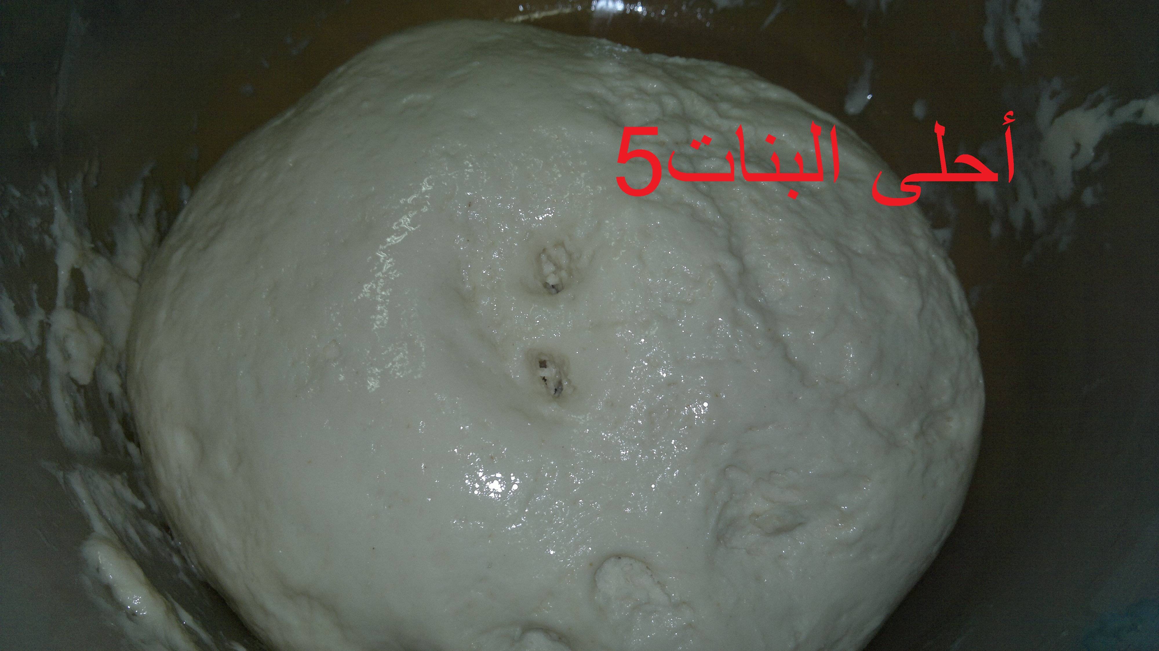 وهذا الدقيق بالتدريج أثناء العجن وملحظة العجينة ماتكون قاسية