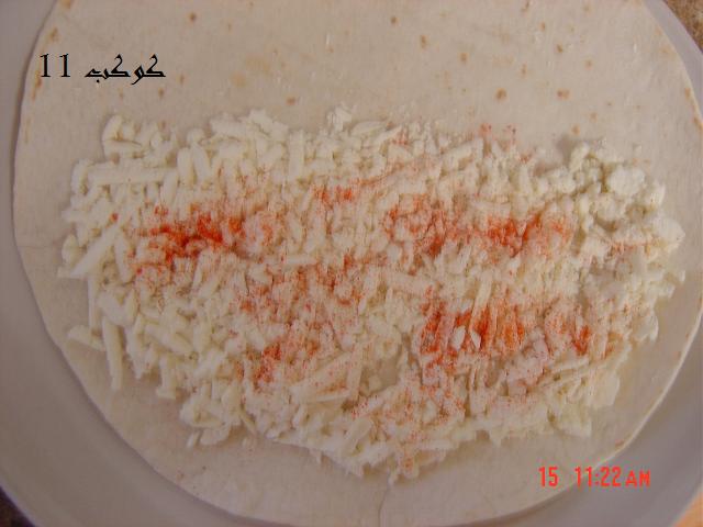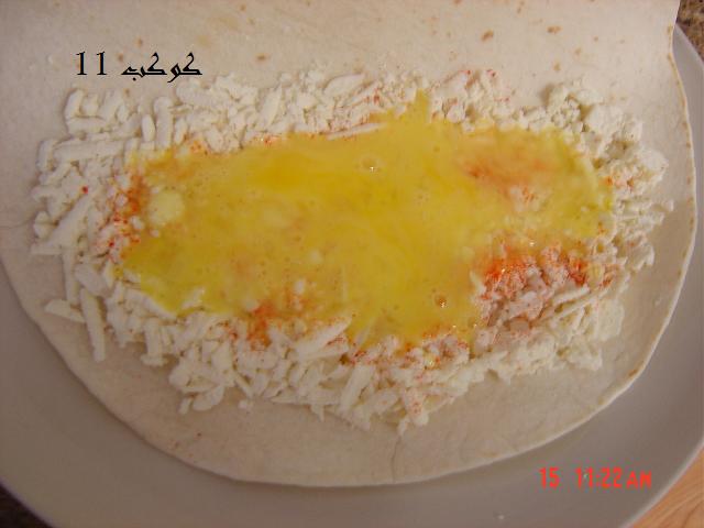 الحشوه الثانيه جبنة فيتا مع بيض . اذا جيتي بتحطين هذي الحشوه خلي النار اقل من الوسط وحطي الجبن وبعدين انقليها للصاج وخليها مفتوحه وحطي البيضه المخفوق