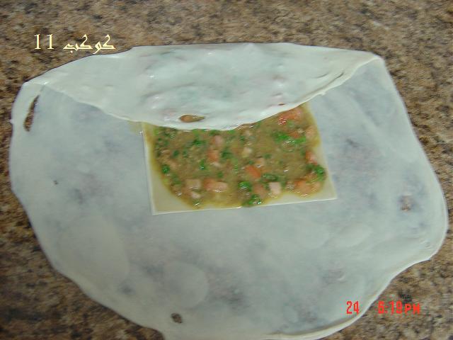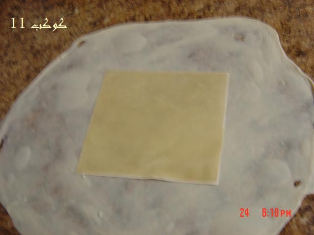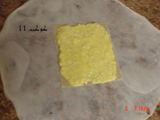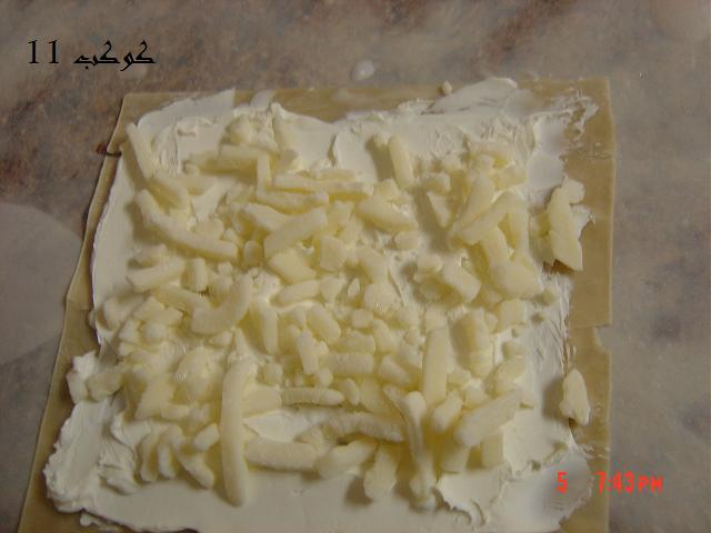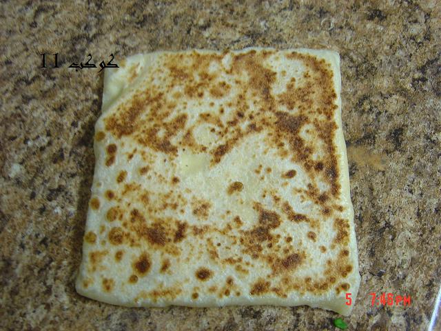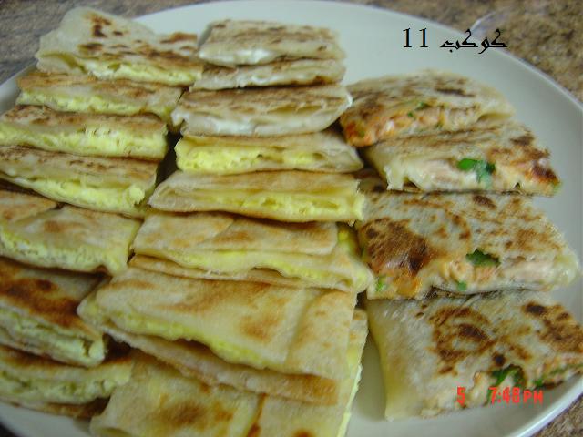 الحشوه الثانيه جبنة فيتا مع بيض . اذا جيتي بتحطين هذي الحشوه خلي النار اقل من الوسط وحطي الجبن وبعدين انقليها للصاج وخليها مفتوحه وحطي البيضه المخفوق