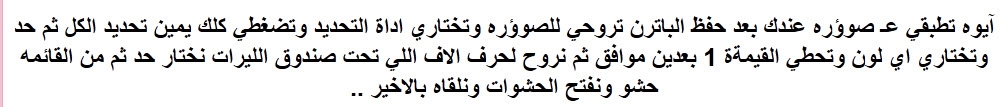 أسمحيلي أستاذه هموسه ارد على اختي رحمة أختي رحمه انتي بعد ماتختاري الصوره اضغطي على اشارة الفلاش الي محدده عليها بالاحمر في الصوره بيطلعلك خيارات اختاري حد بتفتحلك هذي النافذه وفيها تلاقين القيمه 1 ماشره عليها بالحمر والتحديد الثاني تلاقين فيه الحشوه الي عملناها اختاريه وبتطبق عالصوره مباشرهأسمحيلي أستاذه هموسه ارد على اختي رحمة أختي رحمه انتي بعد ماتختاري الصوره اضغطي على اشارة...