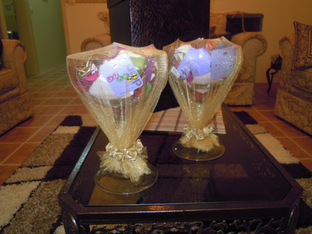 شوفي هذي نفس حقت بنتي الاولي وشوفي كيف اخذتها ونسقتها بطريقه ثااانيه وصاارت لزواج اختها الثاانيه حطيت فيها الورد لرش العروس بالزفه اعطيتها بنتين صغاار وصااريو يمشون خلف العروس ويرشوها وهم مااسكين الكااساات هاااذي وبعضهم ساال عنها ومن فين جبتهااا يحسبوها جااهزه