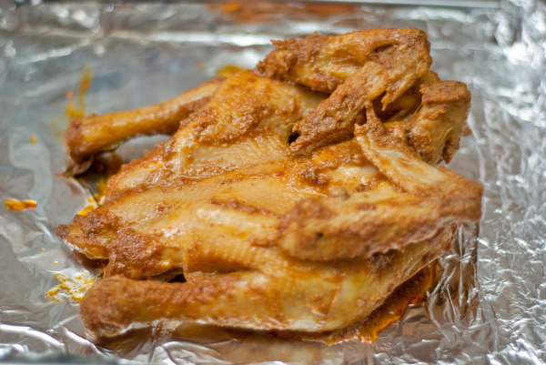 أو تحطيها كاملة في صينية من غير ما تغطيها بقصدير وتولعي من تحت وكل شوية تسقيها بالصوص أو برشاش تحطي فيها موية وزيت أو بنفس المرقة اللي تنزل منها الين ما تستوي وبعدين تولعي من فوق عشان تحمر