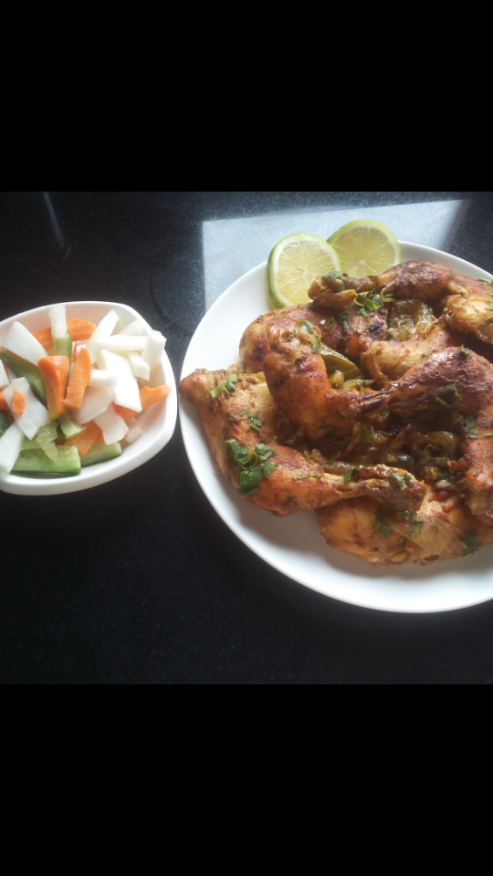 تتبليه و تخليه حوالي ساعتين و بعدها تحطي بصينية الفرن بصل حلقات و فلفل اخضر حار و فوقهم الدجاج و تغطيه بورق فويل و تدخليه الفرن حوالي ساعة و ربع ... وصحتين