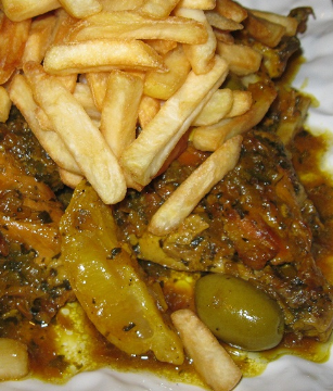 راس ملعقة بسيبيسة وراس ملعقة قعقلة و ثم نغلق طنجرة ضغط حتي ينضج (نار هاديئة ) و نوظيف زيتون اخضر مرقد و حامض نتركه فوق نار قليلا ونطفي عليه