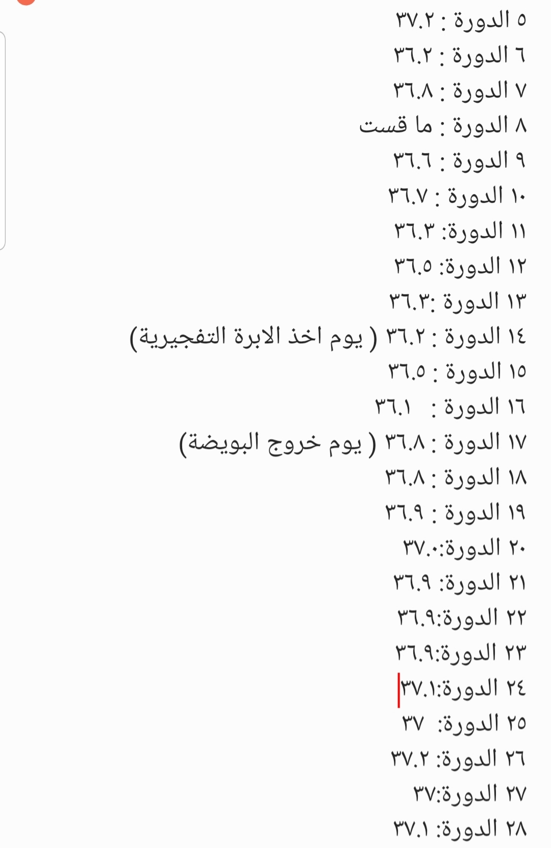 اليوم ٢٧ الدورة والحرارة ٣٧.٢