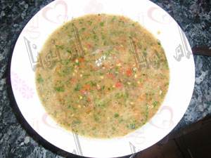بصل مفروم ولحمه وملح وفلفل ولما تستوي تحطي بقدونس وبيض مسلوق