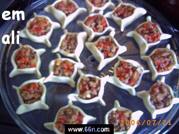 يوضع اللحم المفروم على الرقائق ويساوى