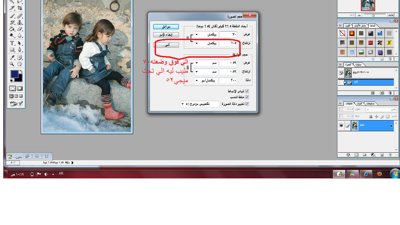 اللي عند ارتفاع وعرض اللي تحت اضبطيها بسم والعدد