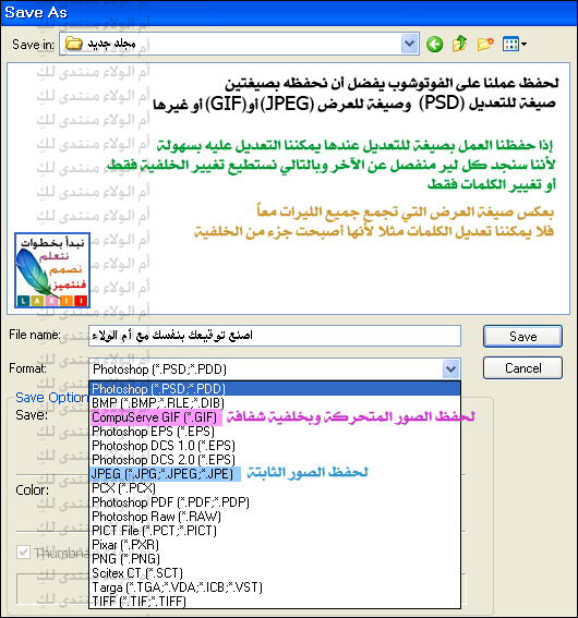 ستظهر لنا نافذة أخرى لنحدد مكان حفظ العمل وصيغته
