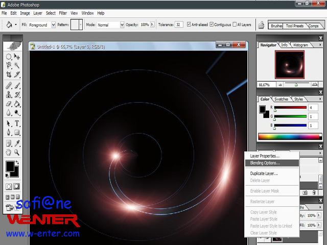 بعد ذلك من قائمة filtres إختر render ثم lens flare