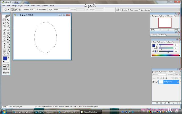 ومن أداة التحديد إختاري الشكل البيضاوي ثم قومي بتصوير الشاشة عن طريق الكيبورد كما شرحنا سابقاً