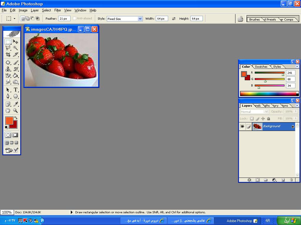 طيب جربي يالغلا بعد ماتحددي أداة التحديد المستطيل شوفي اعداداتها اللي بأسفل القوائم الرئيسية في أعلى البرنامج