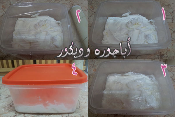 ووضعها في تبر ويه بلاستيك او علبه قزاز ووضع عليا النايلون وتغطية الكريمة بالنايلون وليس العلبه بعد ذلك تغطيتها بغطاها الخاص كما هو موضوح بالصوره