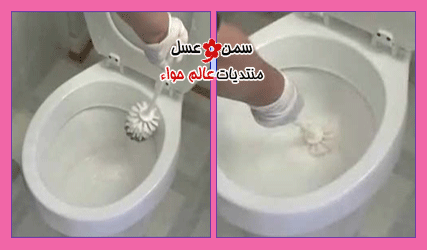 في هذه الاثناء صبي قليل من الخليط الى كرسي التواليت واغسليه بفرشاته الخاصة و من الاعلى بالفرشاة الأخرى
