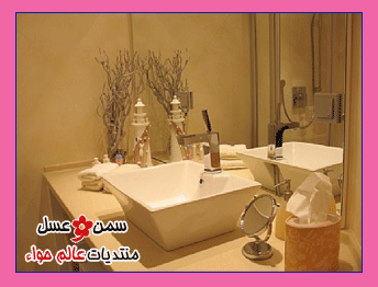 غسلي المغسلة الجوانب مع العمود ولا تنسي الخلاطات .. ( ولتمليع الخلاط :: في علبة رشاش فارغة اضيفي ربع العلبة خل واملئيها بالماء )