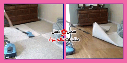 الآن نزلت جميع الاوساخ والاتربة على الأرضية قومي بقلب السجادو كنس اسفله و أعلاه بالمكنسة الكهربائية ..